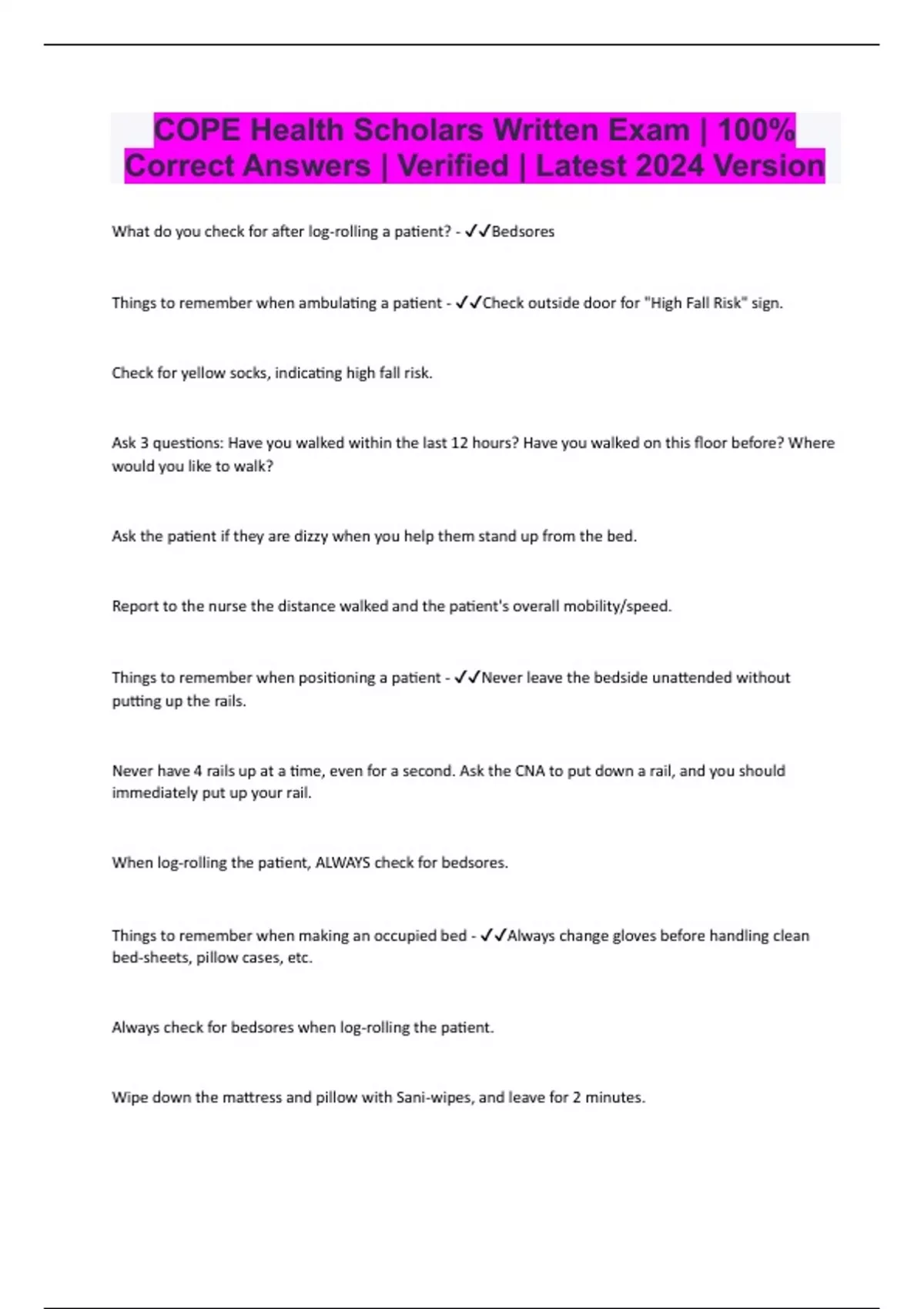 COPE Health Scholars Written Exam | 100% Correct Answers | Verified | Latest 2024 Version