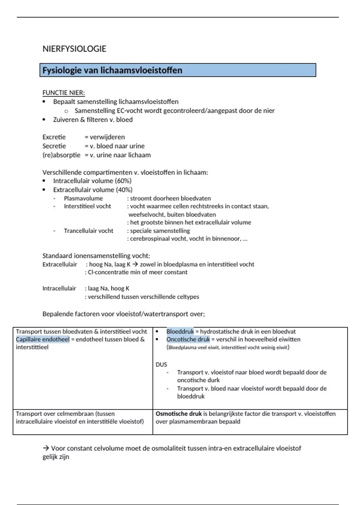 - Transport v. bloed naar vloeistof wordt bepaald door de