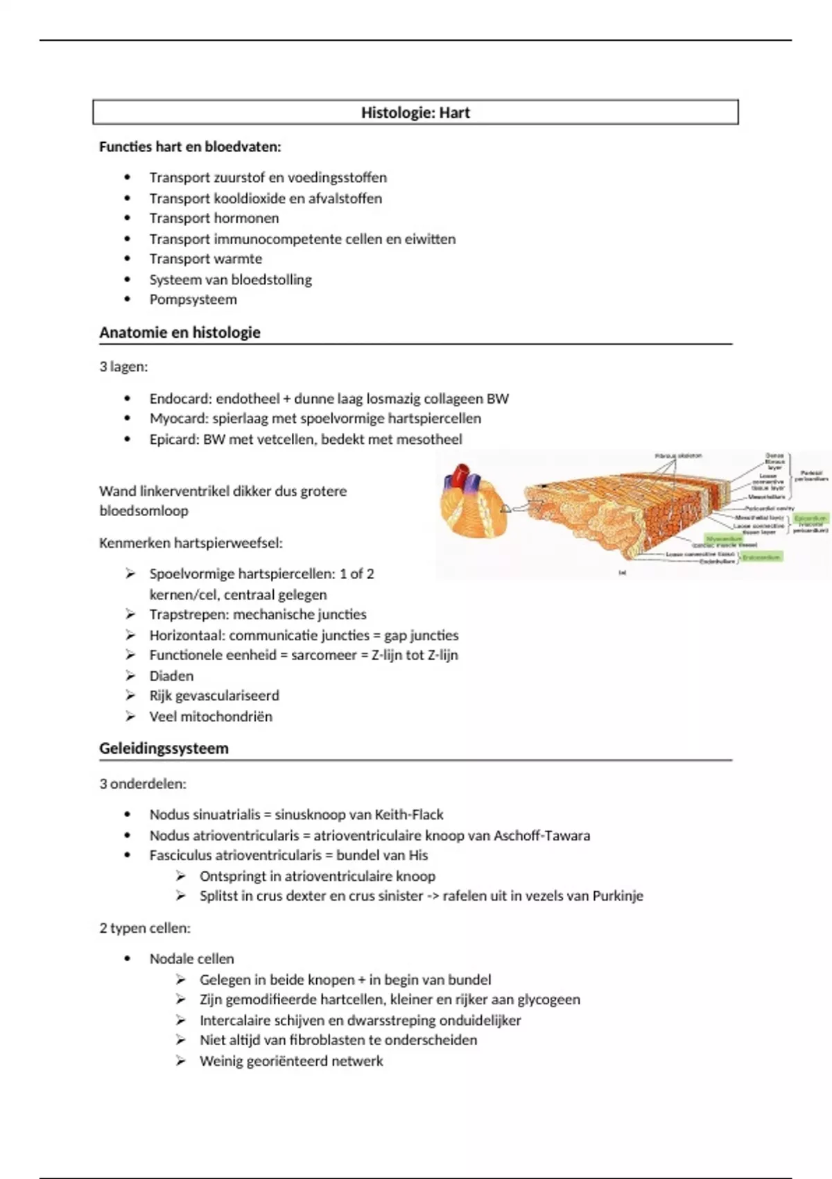 Samenvatting histologie van de orgaanstelsels: Hart, 2e bachelor biomedische wetenschappen