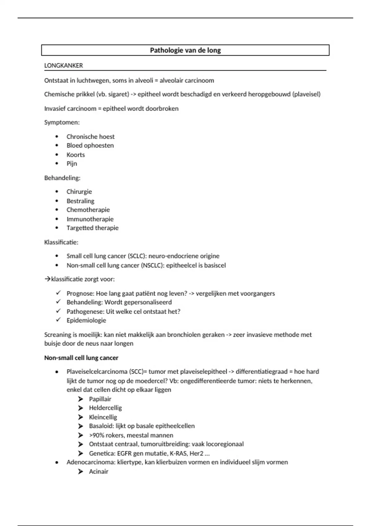 Samenvatting histopathologie: Long, 2e bachelor biomedische wetenschappen