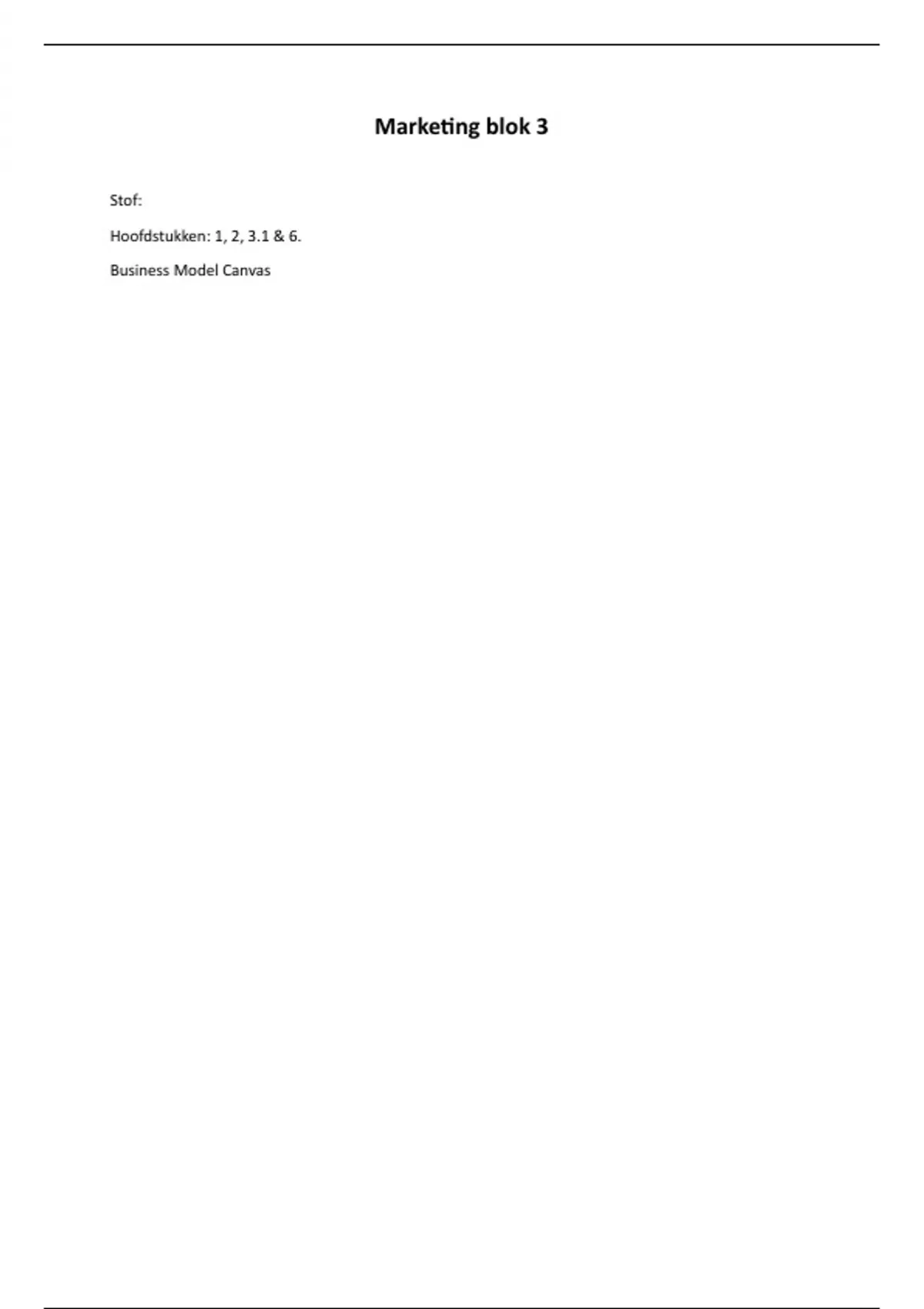 De stof uitgewerkt van hoofdstukken 1, 3.1 & 6. Daarnaast dien je het Business Model Canvas nog wel zelf elders te studeren.