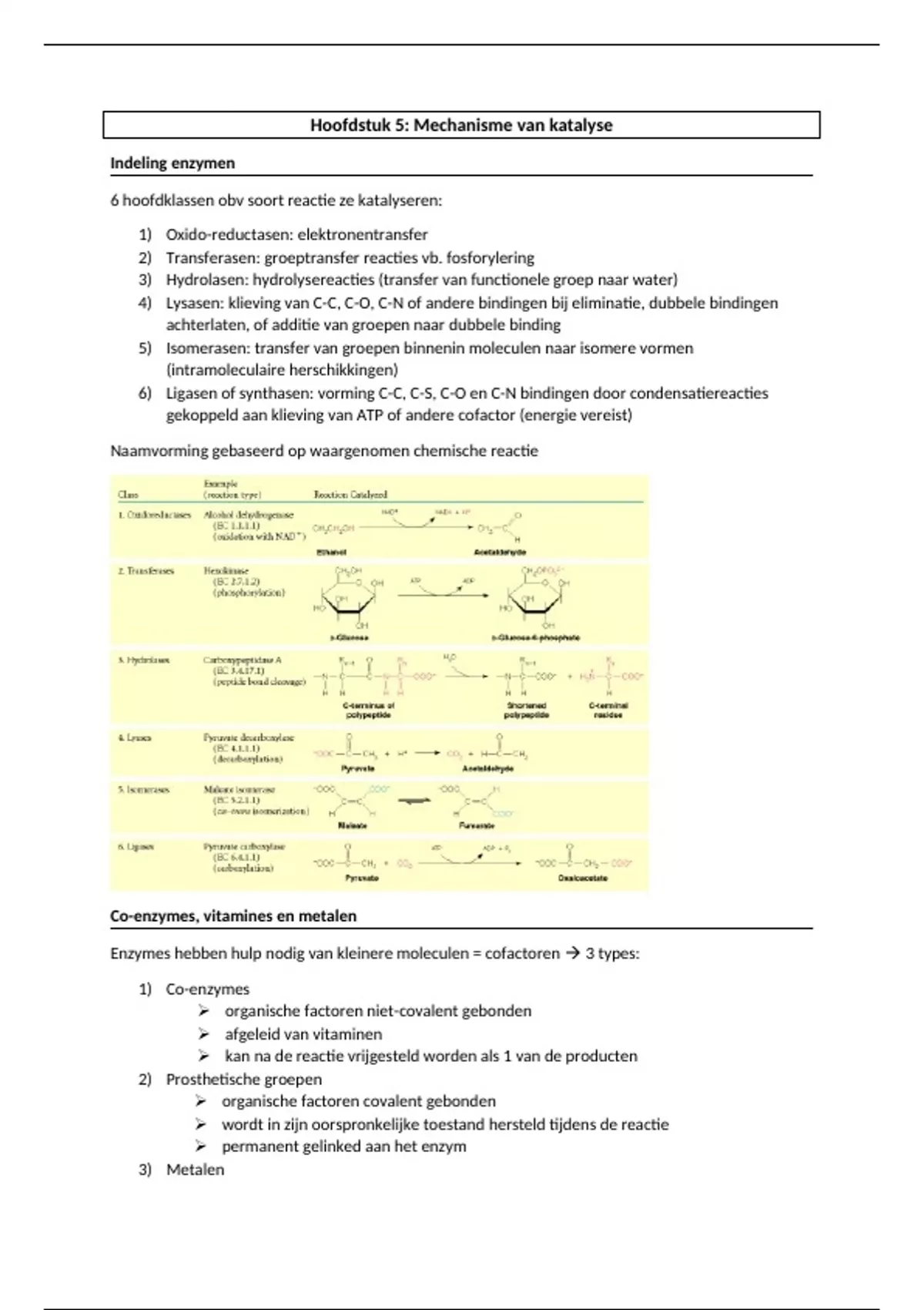6 hoofdklassen obv soort reactie ze katalyseren: