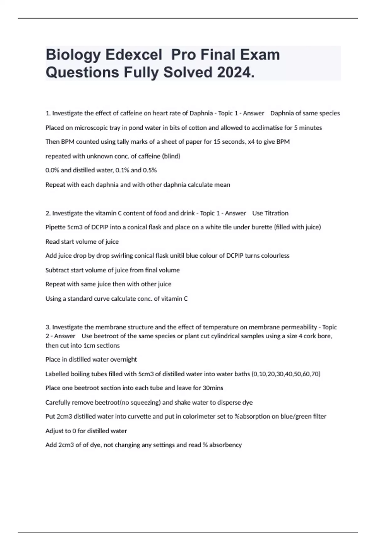 Biology Edexcel Pro Final Exam Questions Fully Solved 2024.