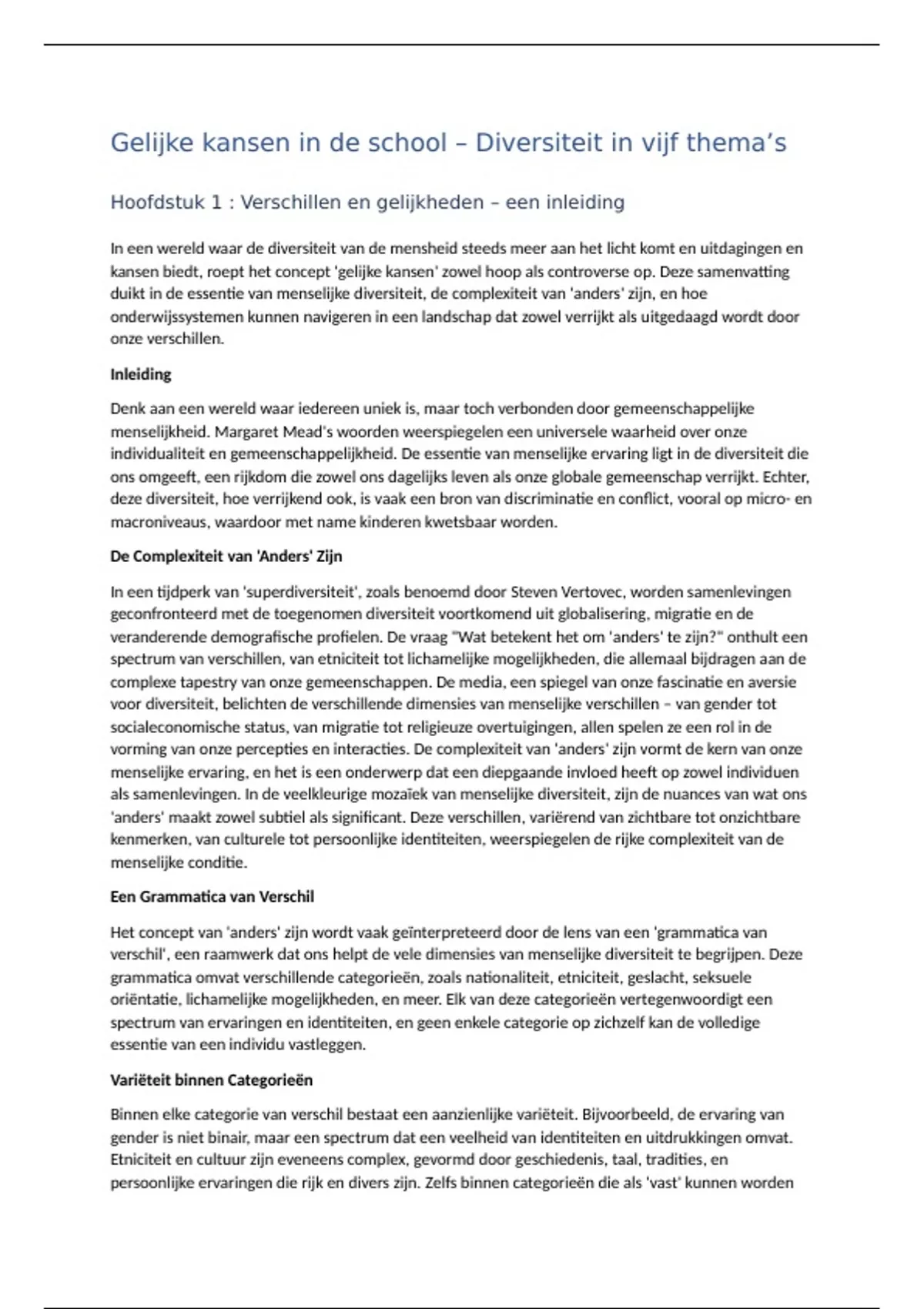 Hierbij een samenvatting van het boek gelijke kansen in school.