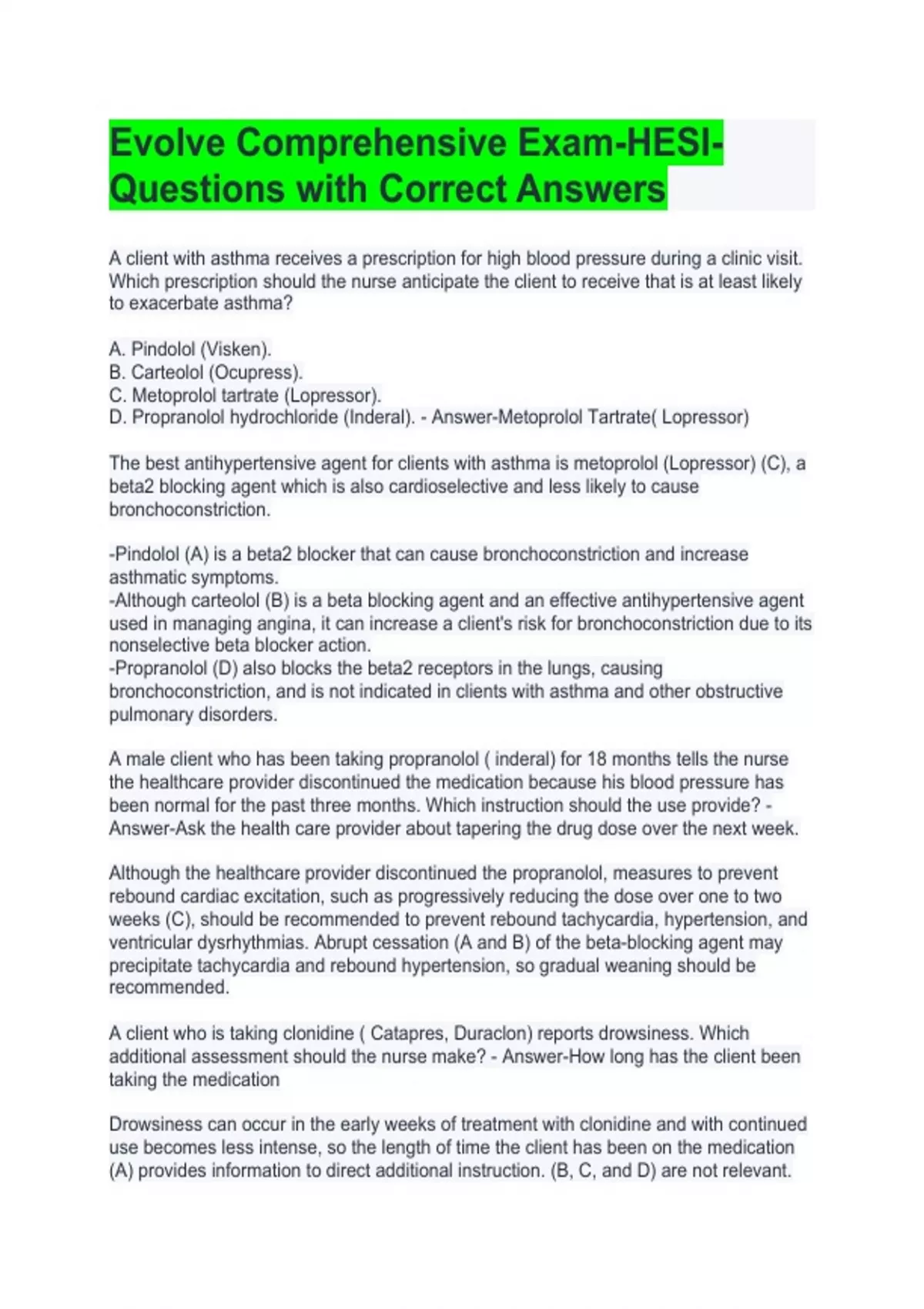 Evolve Comprehensive Exam-HESI-Questions with Correct Answers