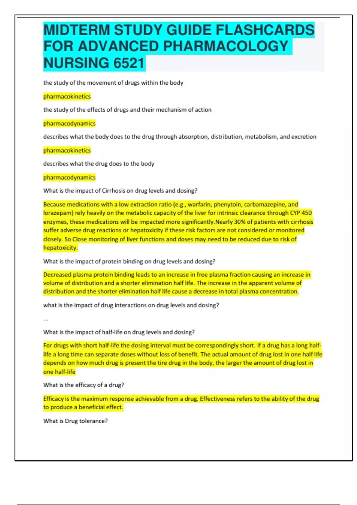 MIDTERM STUDY GUIDE FLASHCARDS FOR ADVANCEDPHARMACOLOGY NURSING 6521