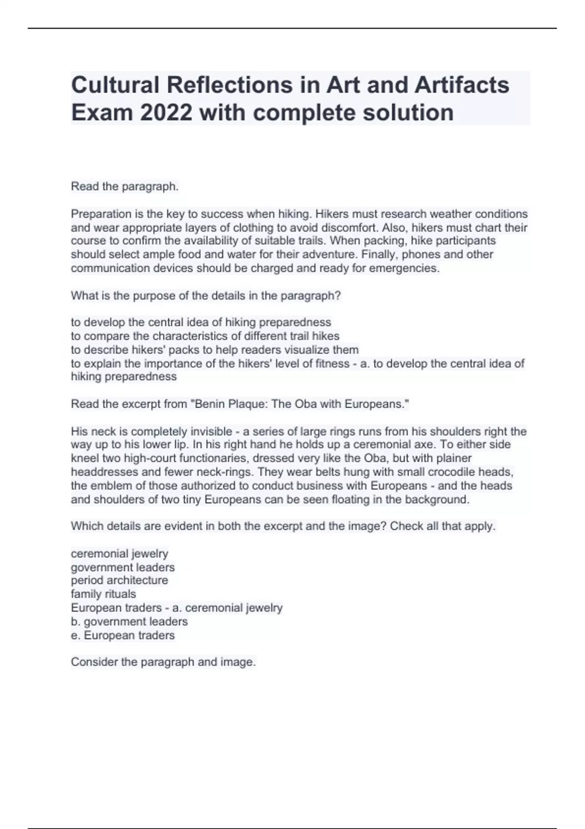 CULTURAL REFLECTIONS IN ART AND ARTIFACTS EXAM 2024 WITH COMPLETE SOLUTION
