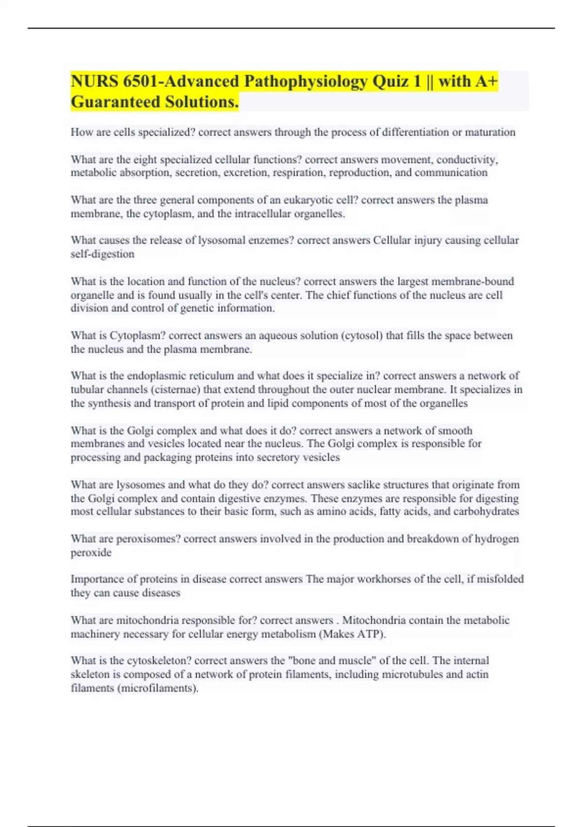 NURS 6501-Advanced Pathophysiology Quiz 1 || with A+ Guaranteed Solutions.
