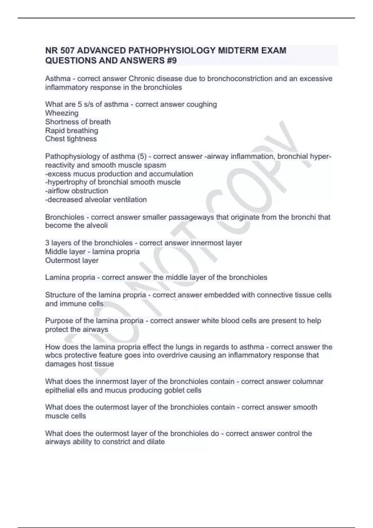 NR 507 ADVANCED PATHOPHYSIOLOGY MIDTERM EXAM QUESTIONS AND ANSWERS #9