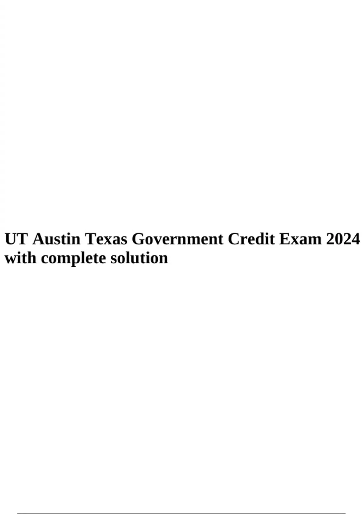 UT Austin Texas Government Credit Exam 2024 with complete solution.