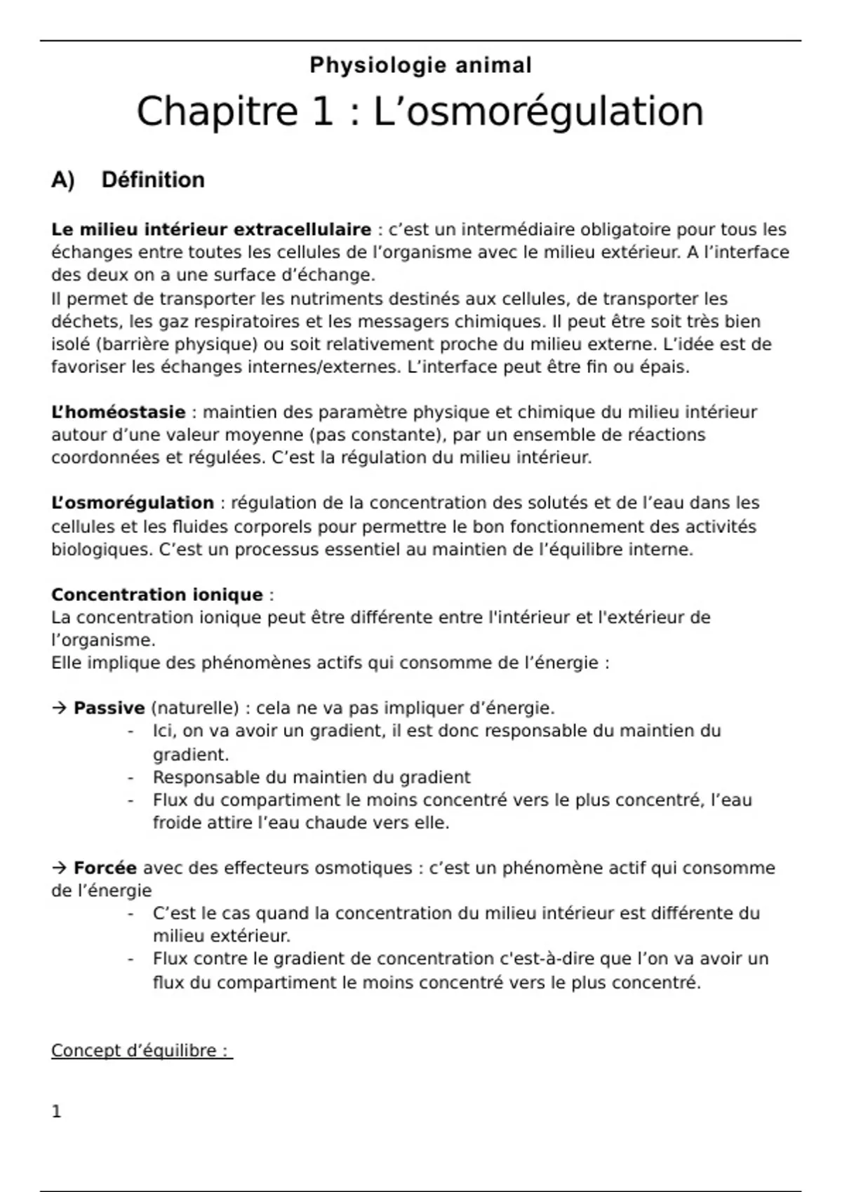 L’osmorégulation : régulation de la concentration des solutés et de l’eau dans les