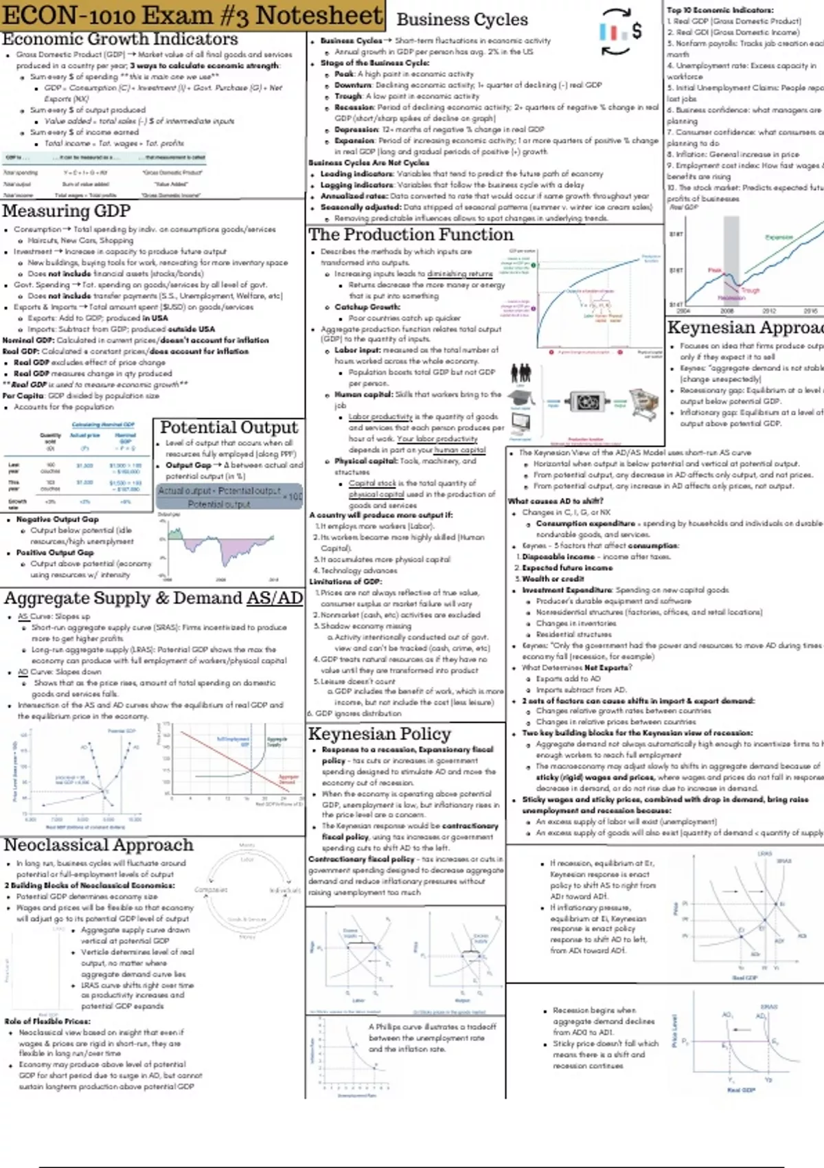 One-sided print out for exam #3; everything covered for the exam condensed to 1 page.