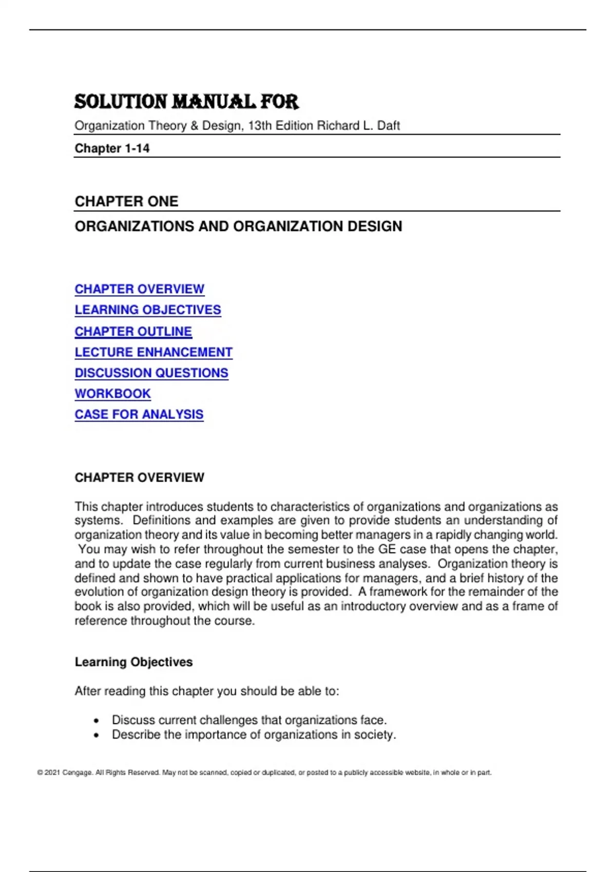 Solution Manual For Organization Theory & Design, 13th Edition by Richard L. Daft Chapter 1-14.