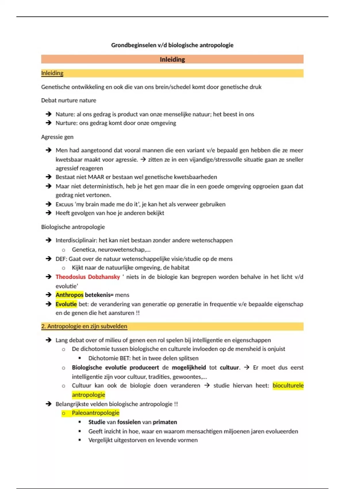 Belangrijkste velden biologische antropologie !!