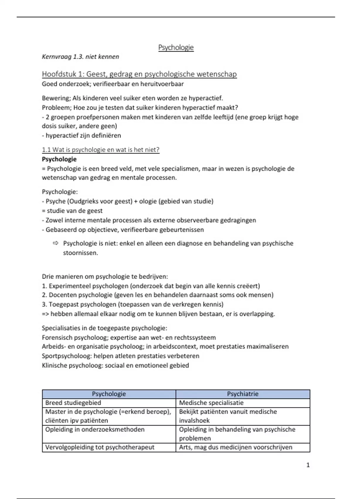 1.1 Wat is psychologie en wat is het niet?
