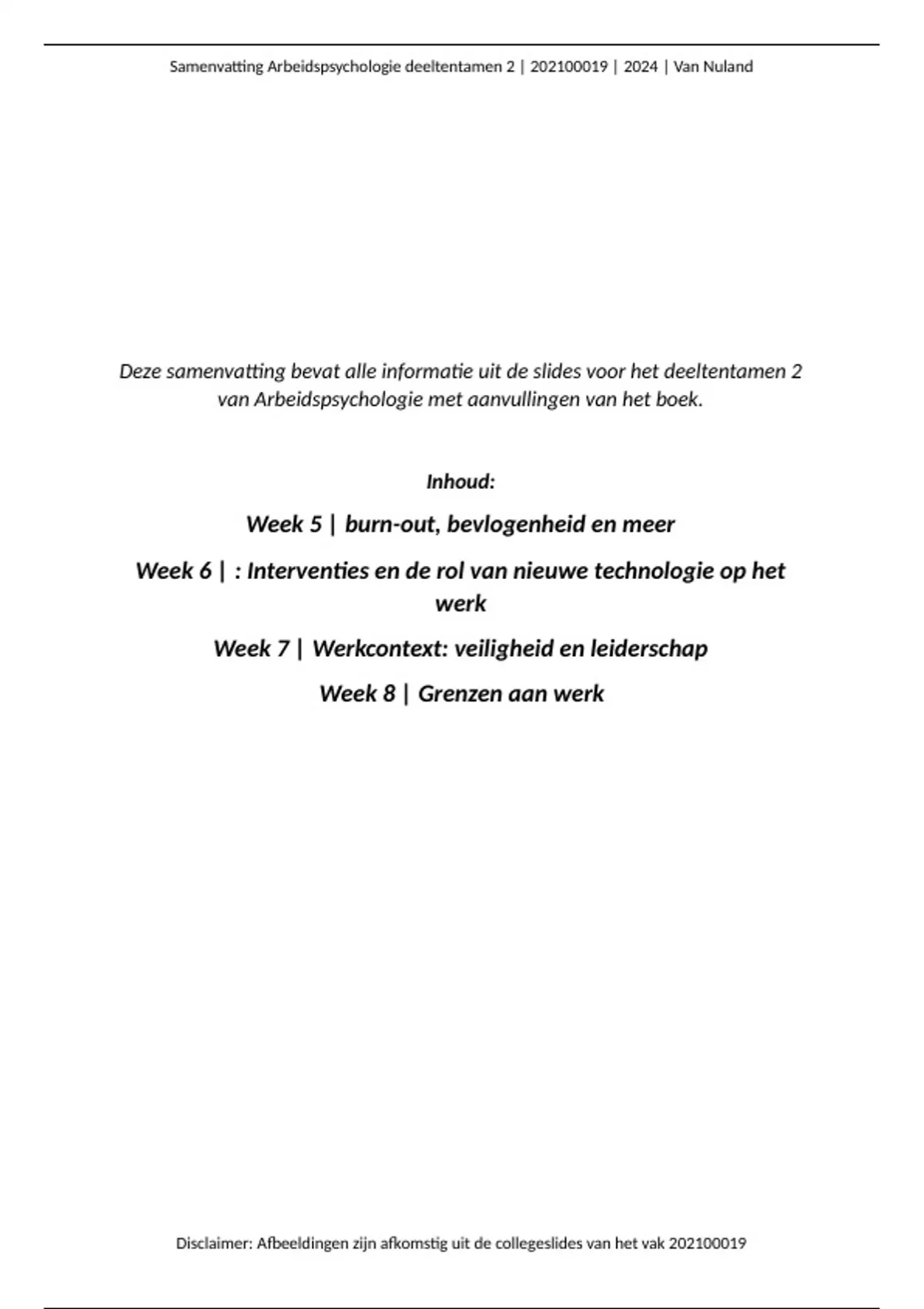 , Samenvatting Arbeidspsychologie deeltentamen 2 | 202100019 | 2024 | Van Nuland