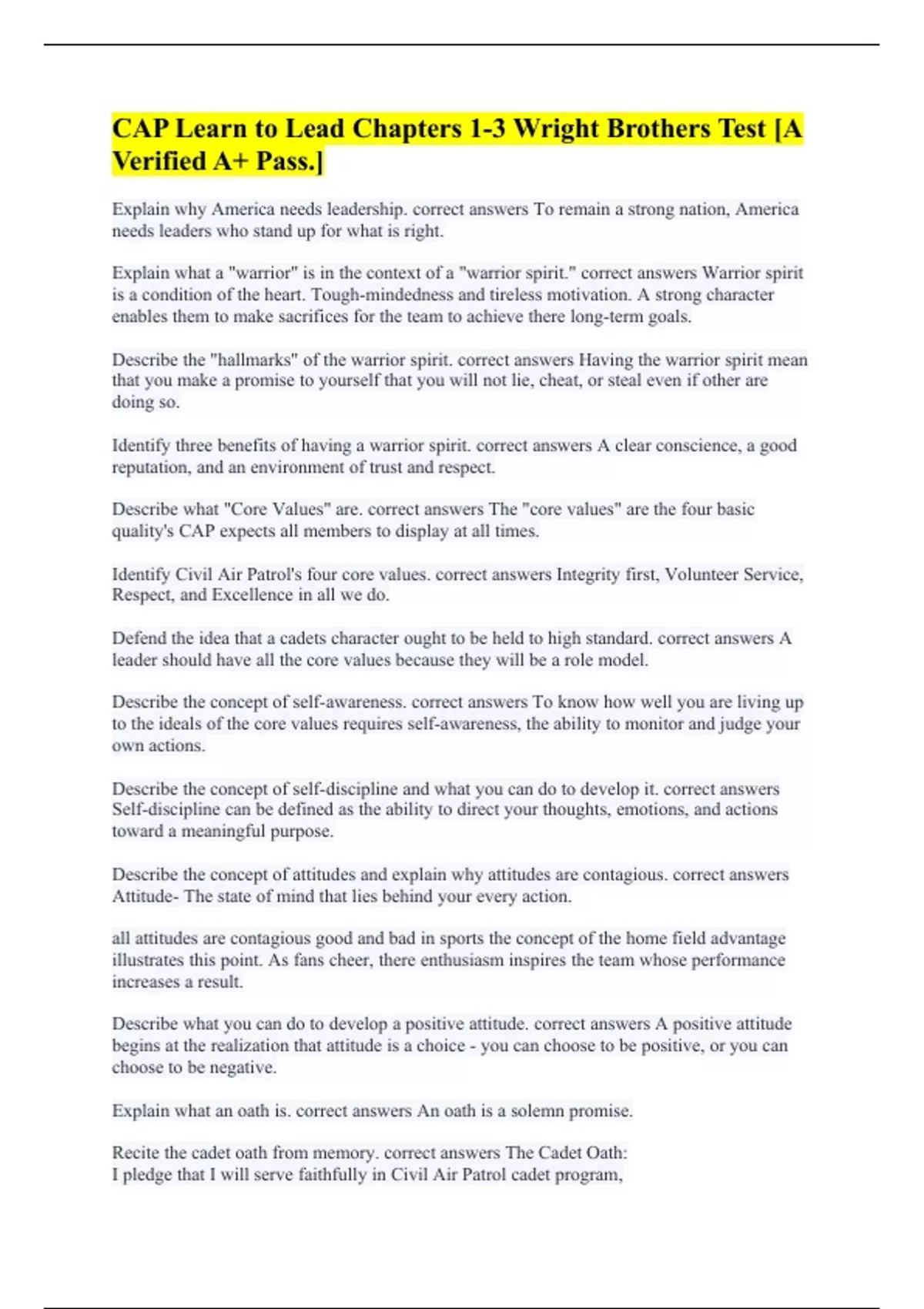 CAP Learn to Lead Chapters 1-3 Wright Brothers Test [A Verified A+ Pass.]