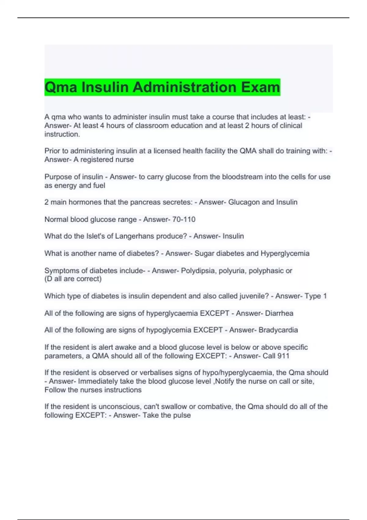 QMA insulin Exam Bundle