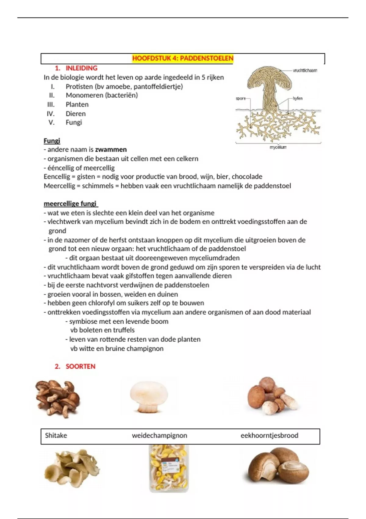 Meercellig = schimmels = hebben vaak een vruchtlichaam namelijk de paddenstoel