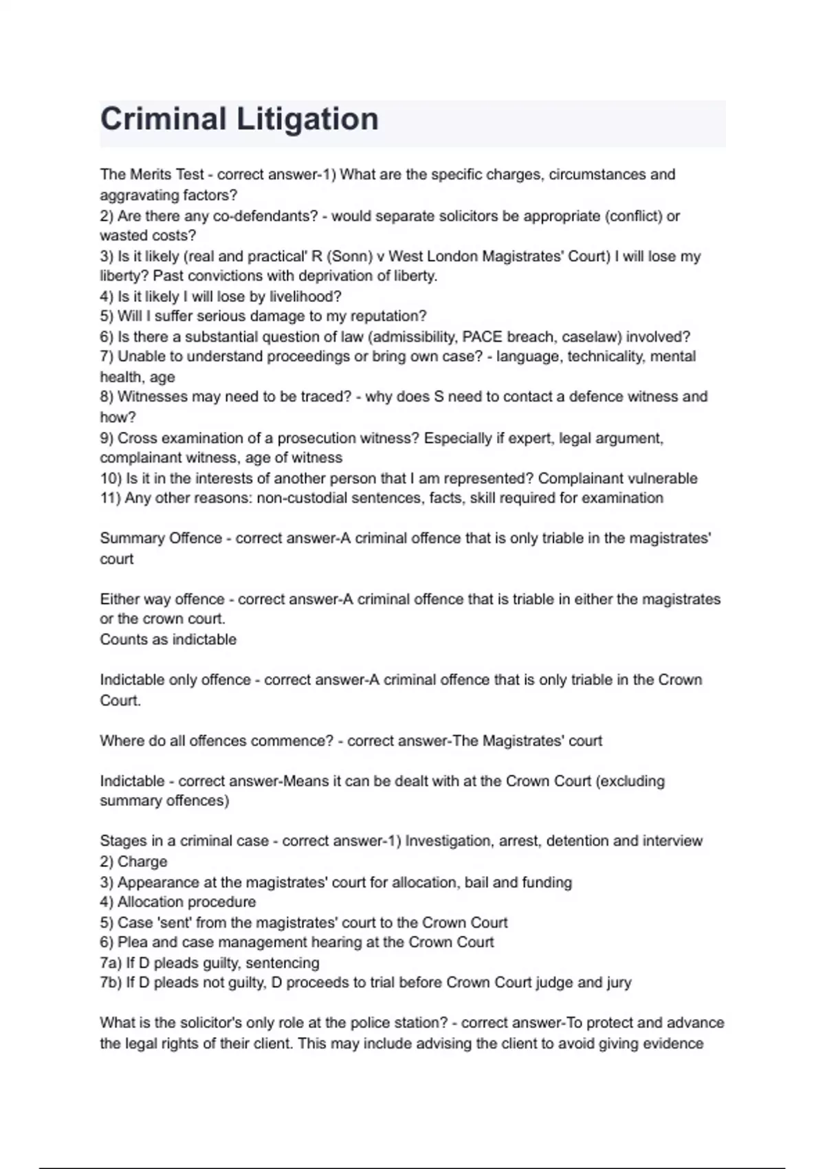 Criminal Litigation All Verified Questions with Complete Solution