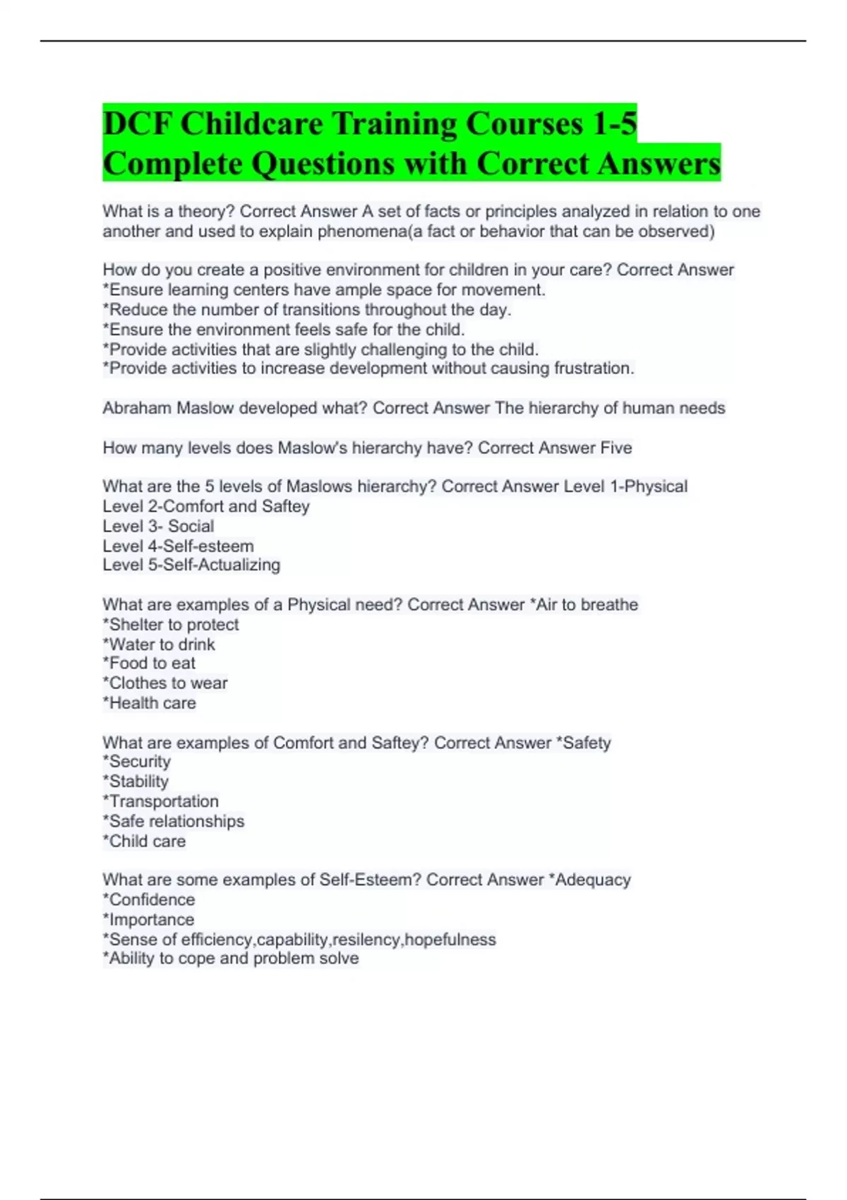 DCF Childcare Training Courses 1-5 Complete Questions with Correct Answers