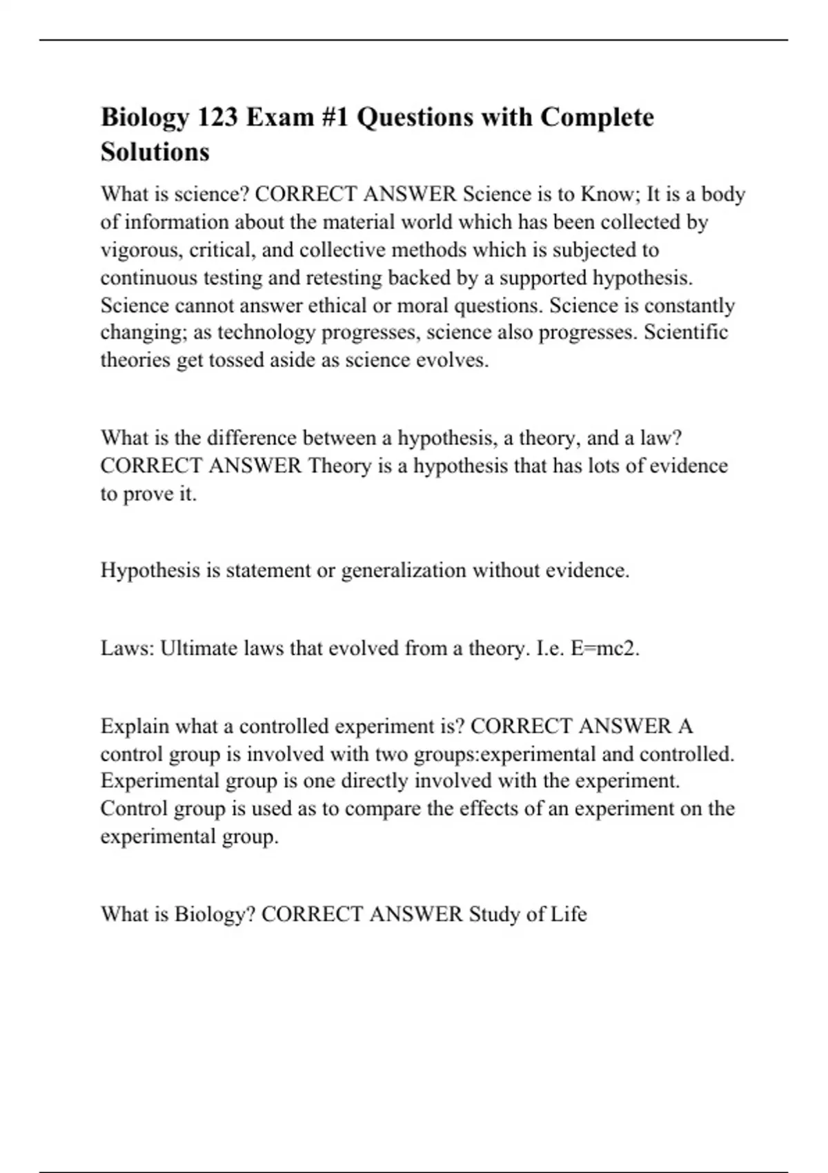 biology 123 exam 1 questions with complete soluti