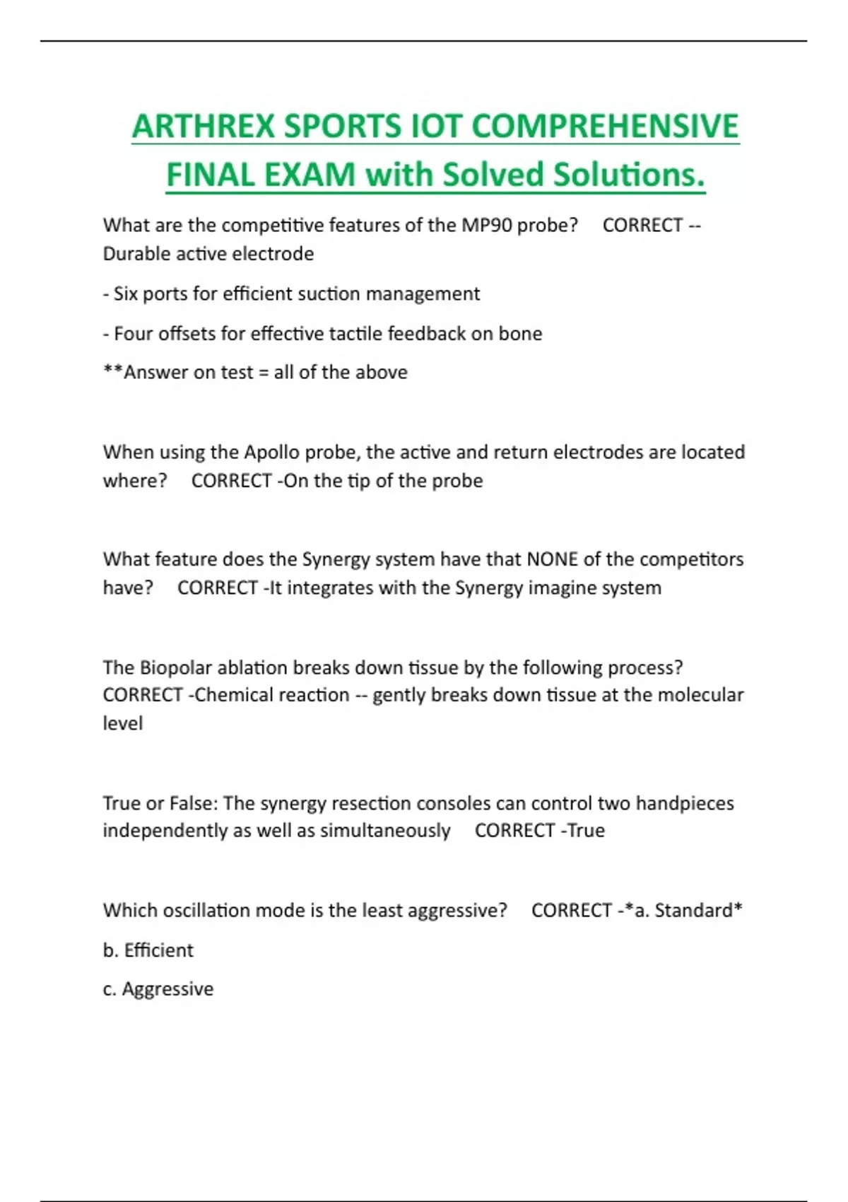 ARTHREX SPORTS IOT COMPREHENSIVE FINAL EXAM with Solved Solutions.