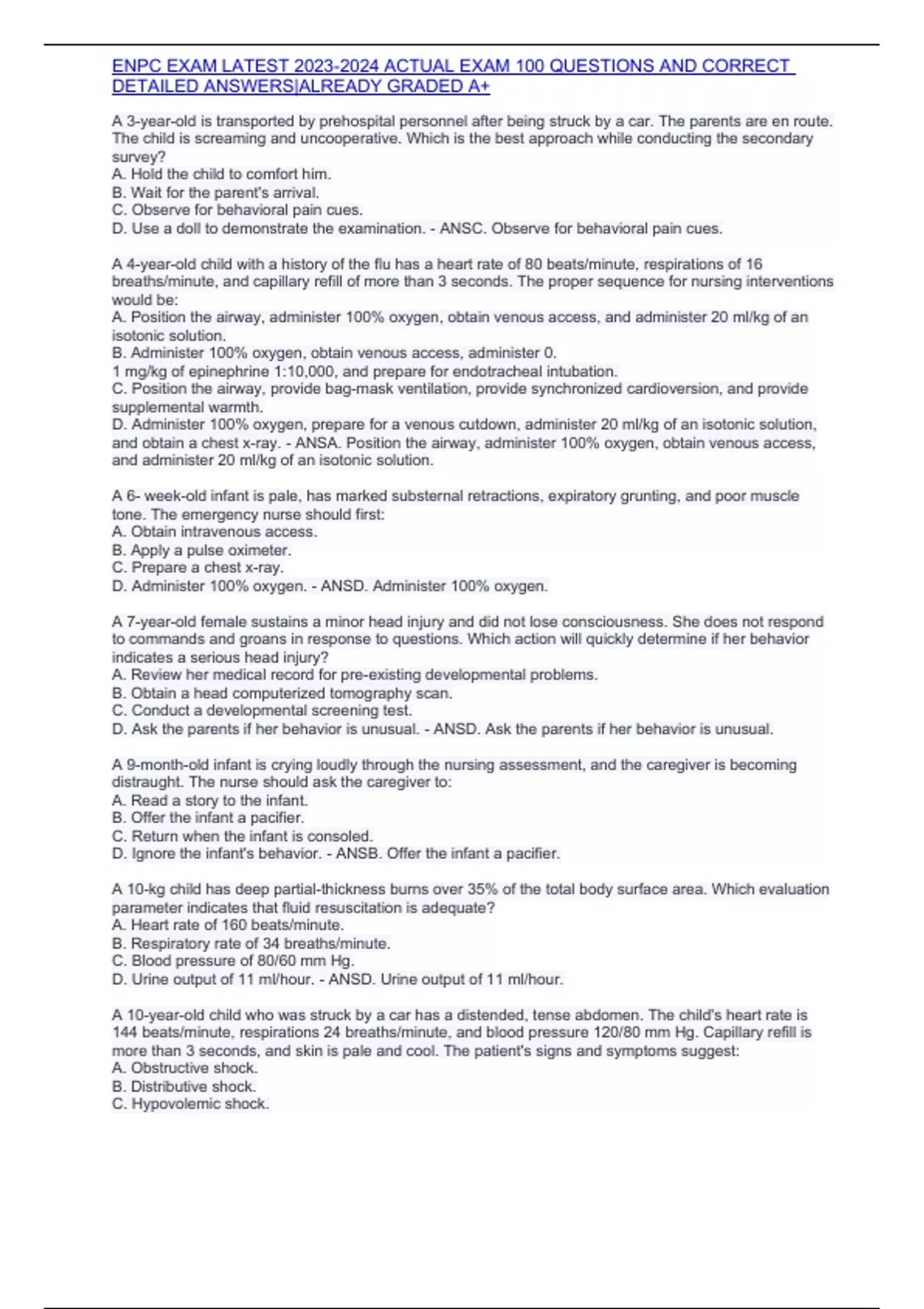 ENPC EXAM LATEST ACTUAL EXAM 100 QUESTIONS AND CORRECT DETAILED ANSWERS|ALREADY GRADED A+
