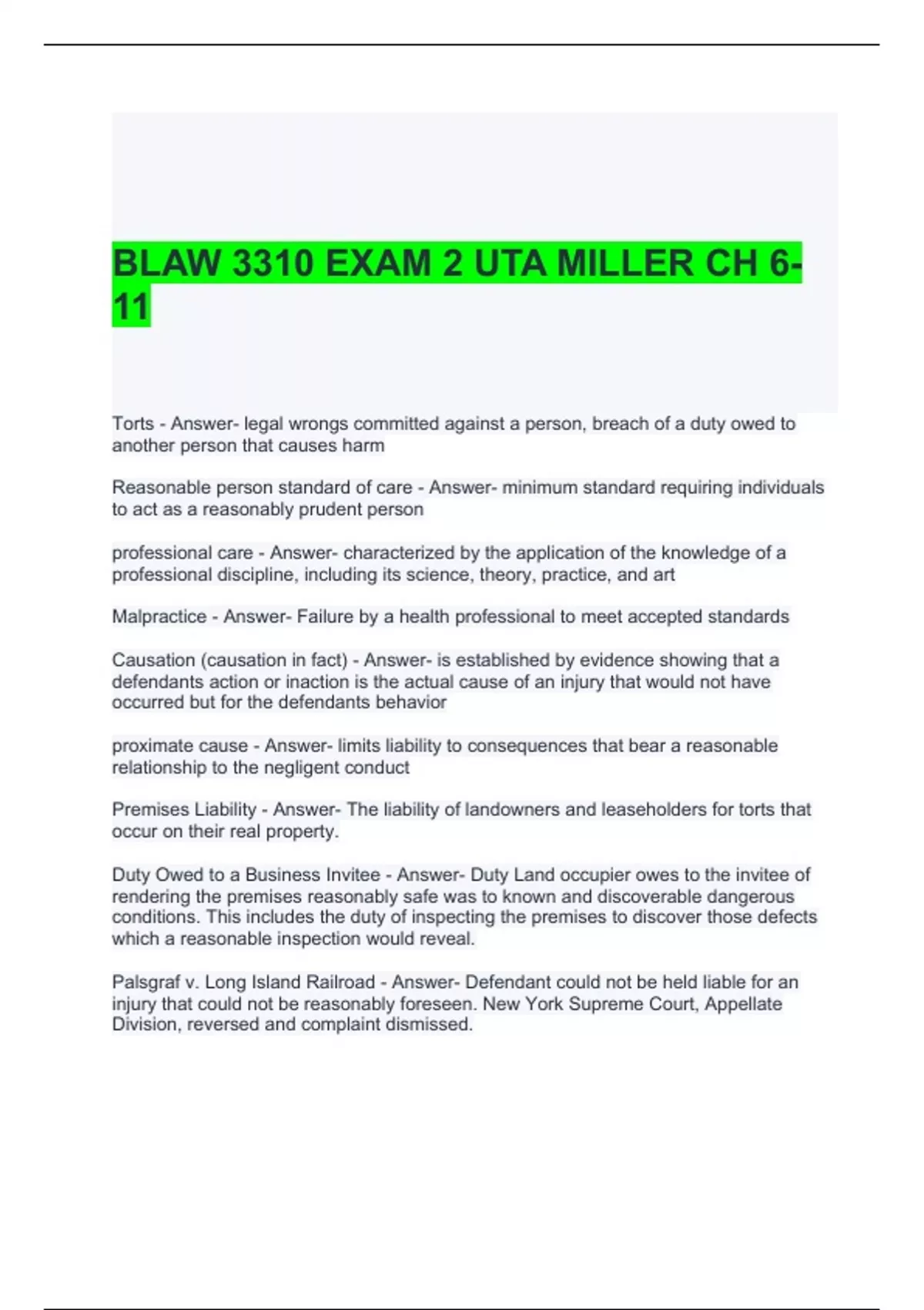 BLAW 3310 EXAM 2 UTA MILLER CH 6-11 QUESTIONS AND ANSWERS
