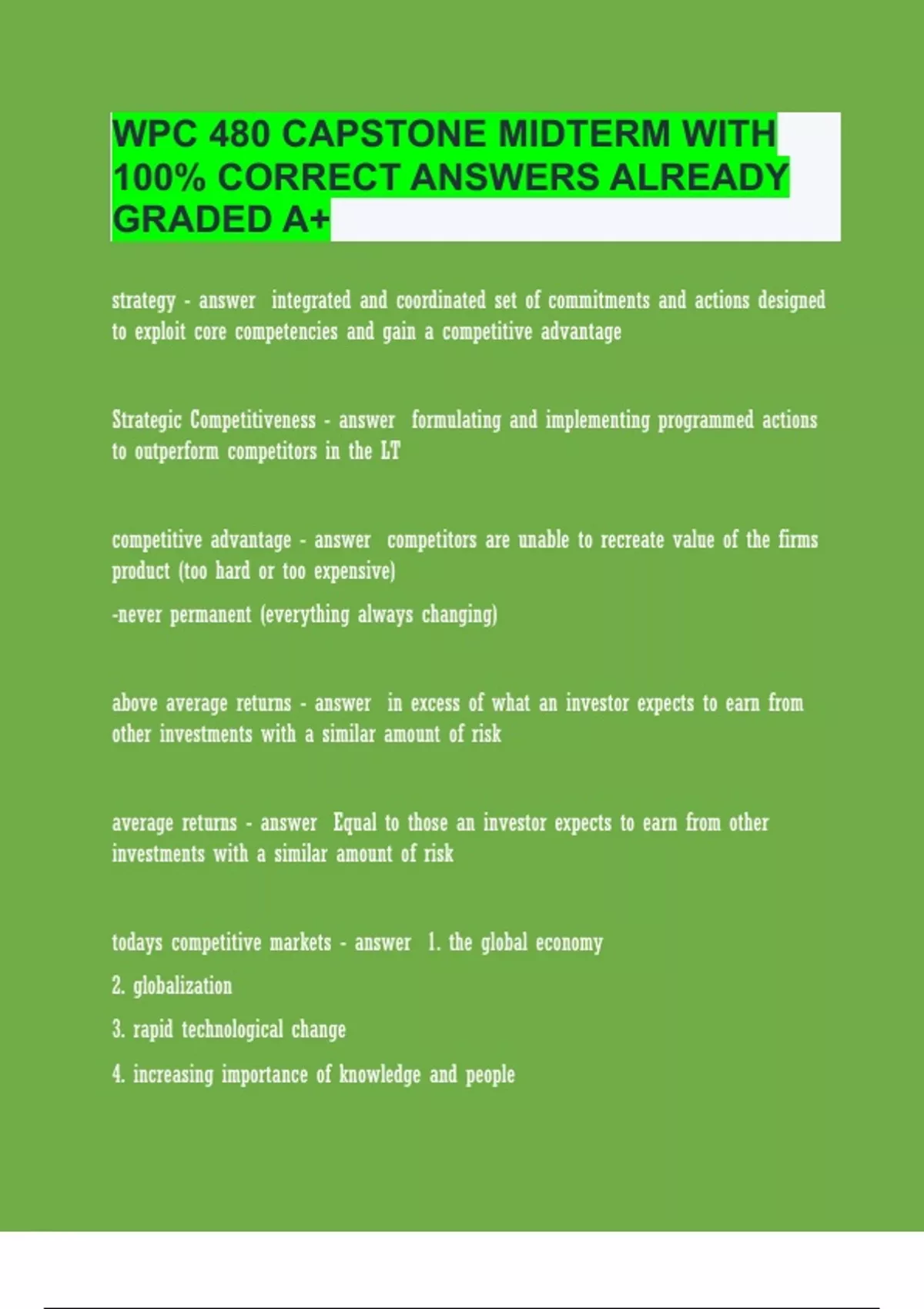 WPC 480 CAPSTONE MIDTERM WITH 100% CORRECT ANSWERS ALREADY GRADED A+
