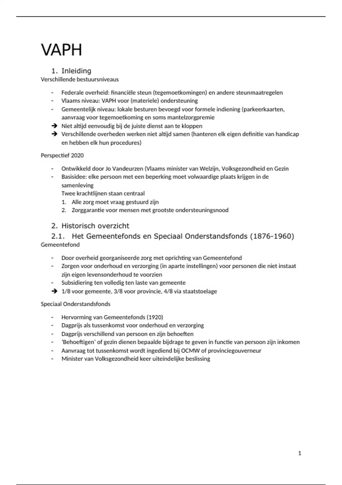 Uitgebreide samenvatting ODW1 hoofdstuk VAPH (notities werk-en hoorcolleges, samengevat uit syllabus)