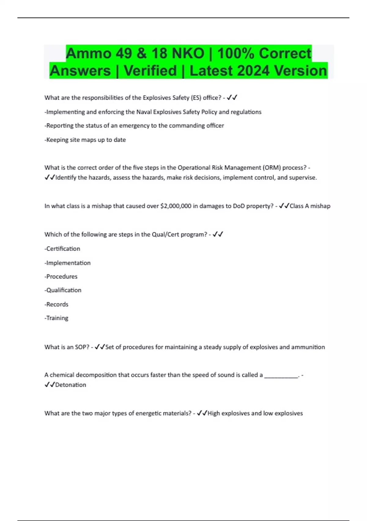 Ammo 49 & 18 NKO | 100% Correct Answers | Verified | Latest 2024 Version