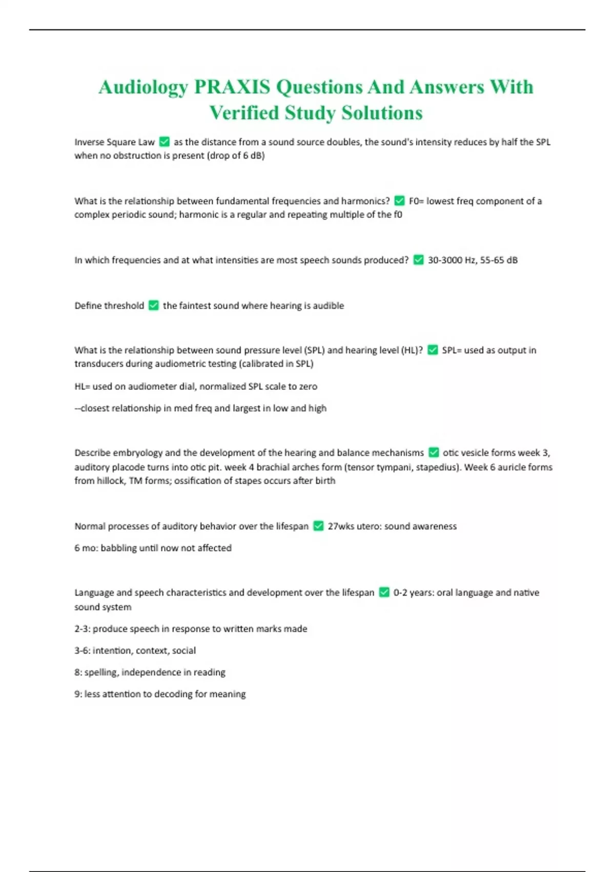 Audiology PRAXIS Questions And Answers With Verified Study Solutions Audiology PRAXIS Questions And Answers With Verified Study Solutions
