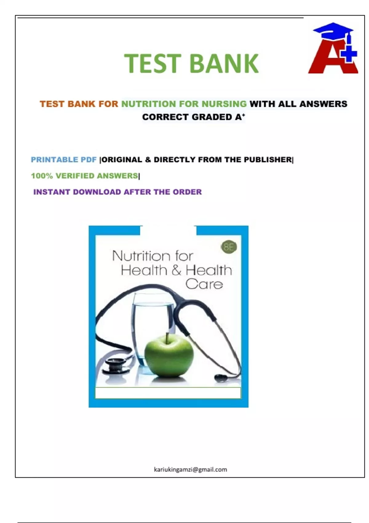 TEST BANK FOR NUTRITION FOR NURSING WITH ALL ANSWERS CORRECT GRADED A+