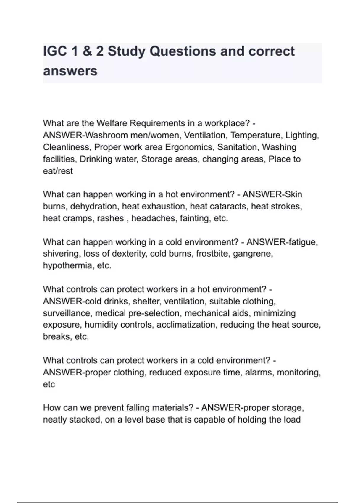 IGC 1 & 2 Study Questions and correct answers with complete solution
