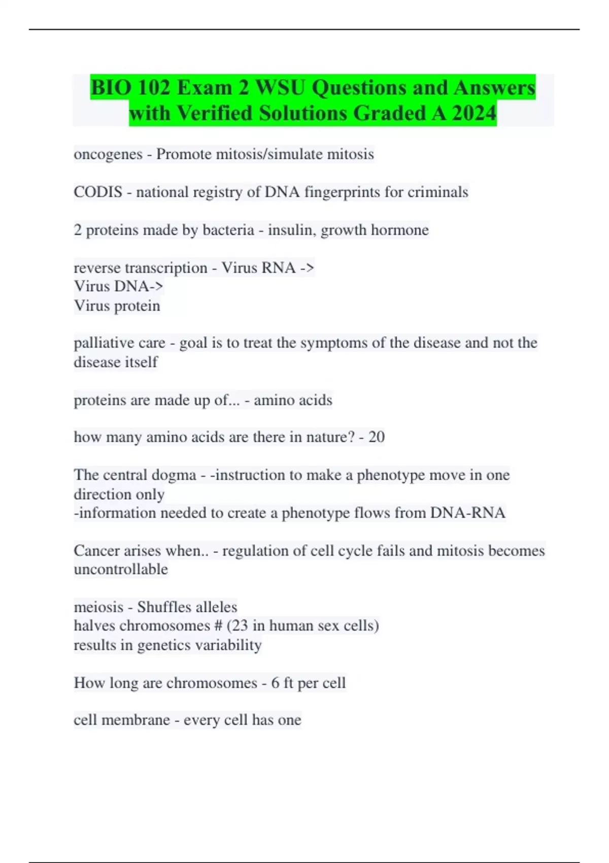 BIO 102 Exam 2 WSU Questions and Answers with Verified Solutions Graded A 2024