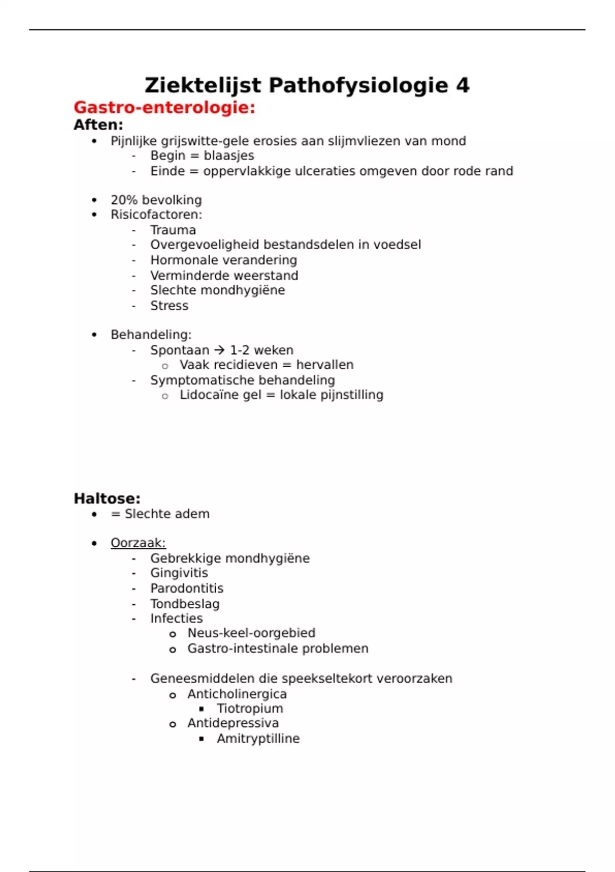 Ziektelijst Pathofysiologie 4