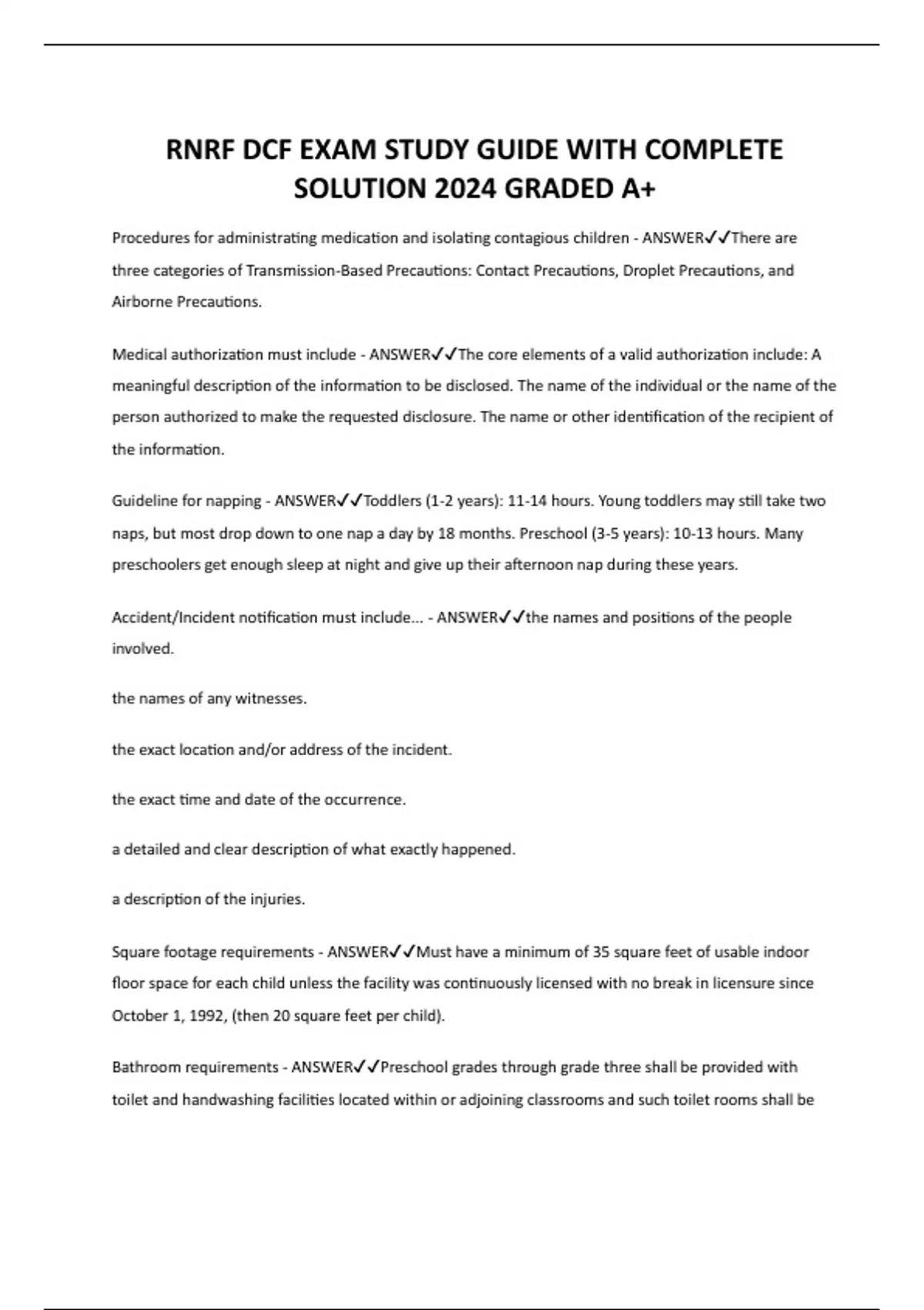 rnrf dcf exam study guide with complete solution 2