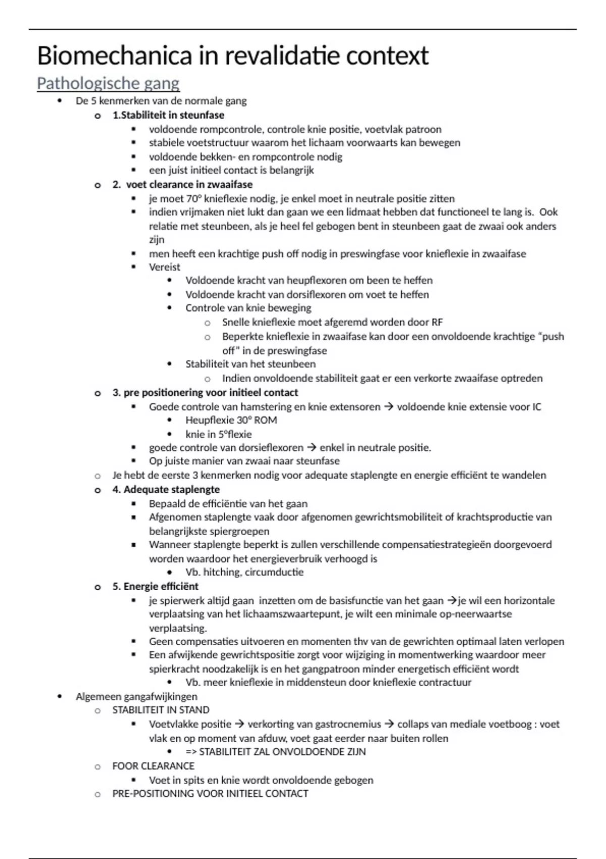 Een VOLLEDIGE samenvatting van BIOMECHANICA in revalidatie context 3e BACH 2E FASE