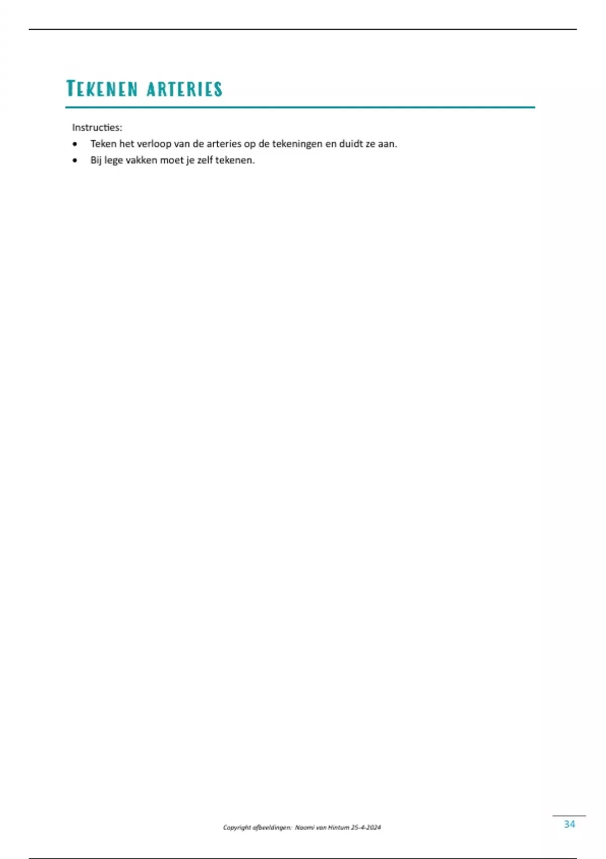 • Teken het verloop van de arteries op de tekeningen en duidt ze aan.