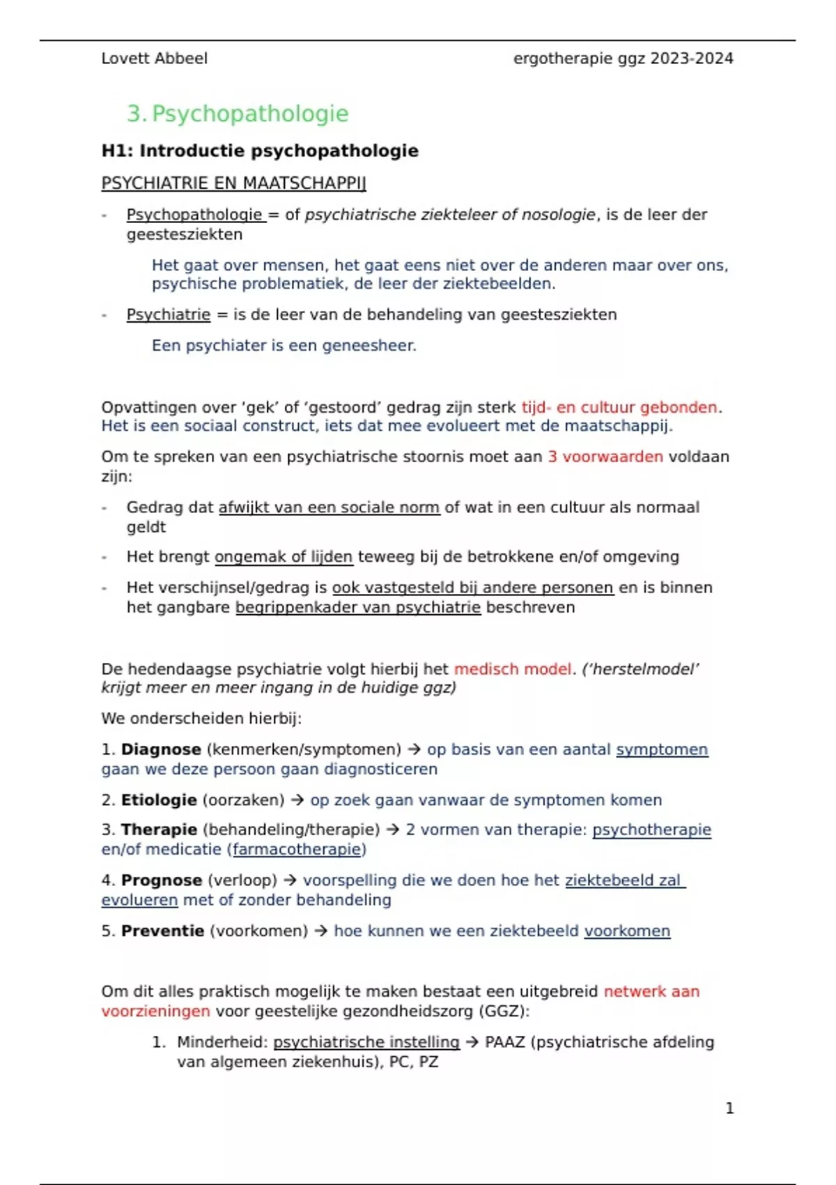 - Psychopathologie = of psychiatrische ziekteleer of nosologie, is de leer der