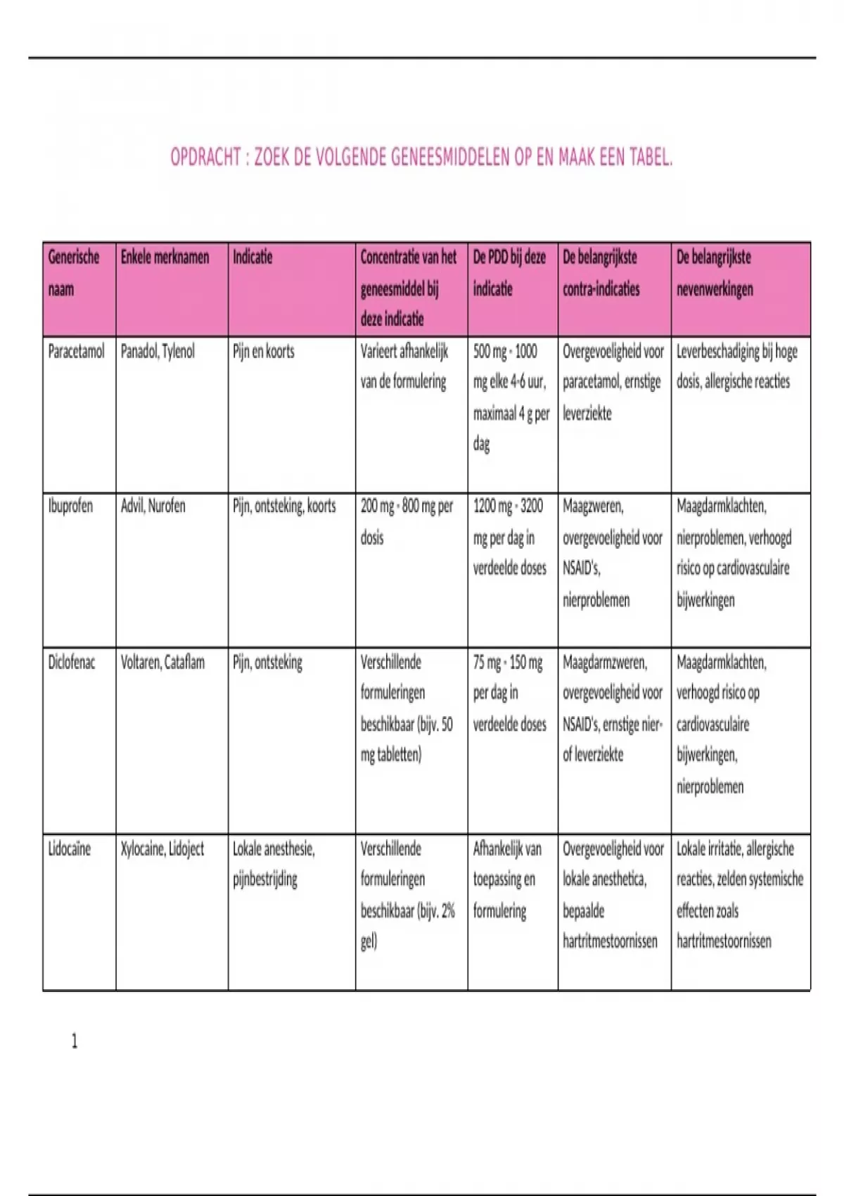 Dit is een opdracht uit de cursus van farmacologie (eerste jaar, 2de semester, vroedkunde aan vives kortrijk. Het is een tabel die te kennen is voor het examen, en bevat alle geneesmiddelen die je moet kunnen/kennen.