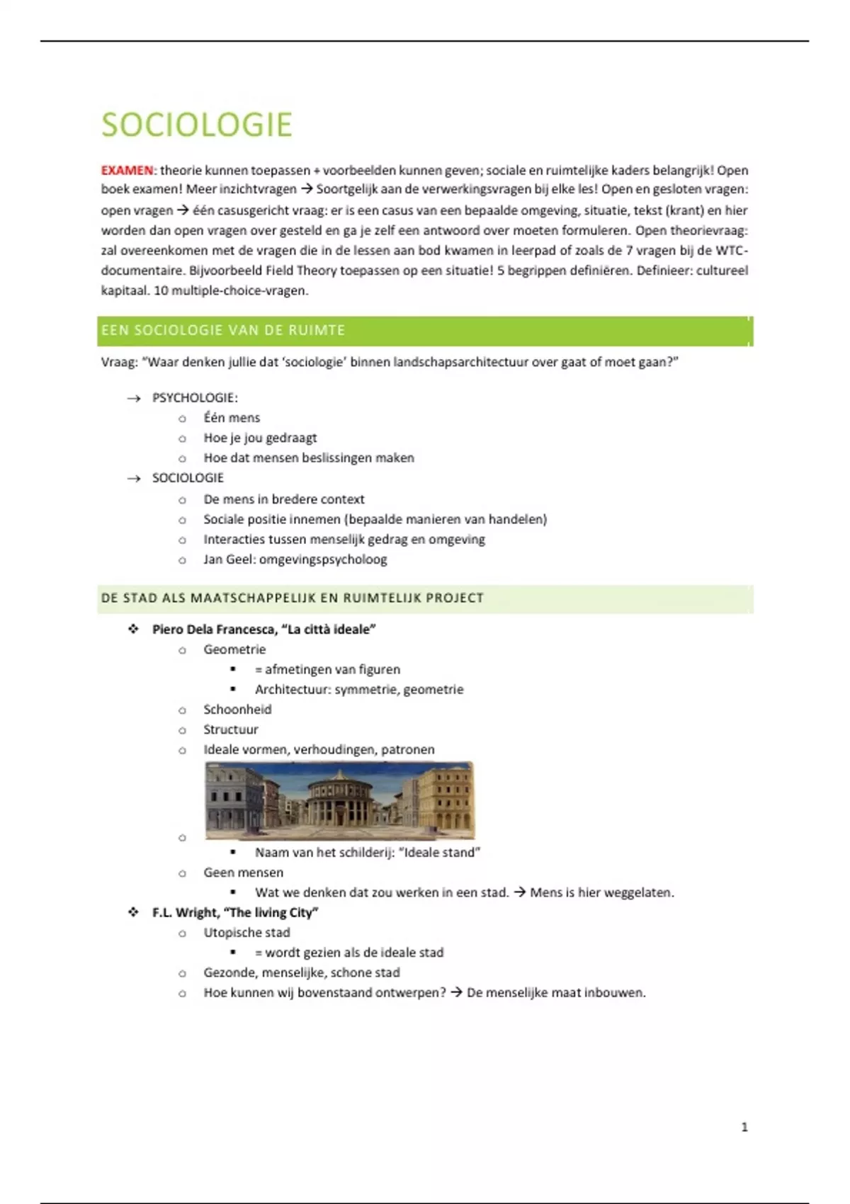 EXAMEN: theorie kunnen toepassen + voorbeelden kunnen geven; sociale en ruimtelijke kaders belangrijk! Open