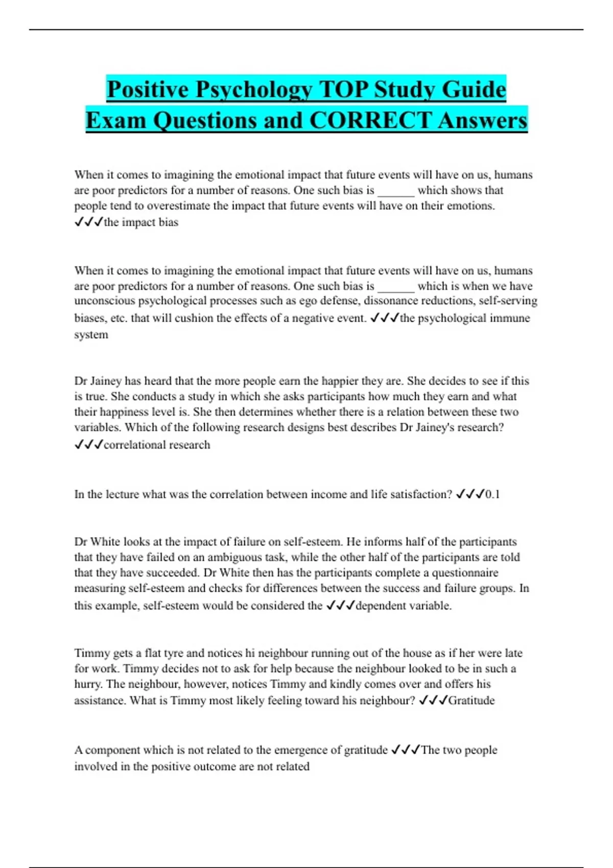 Positive Psychology TOP Study Guide Exam Questions and CORRECT Answers