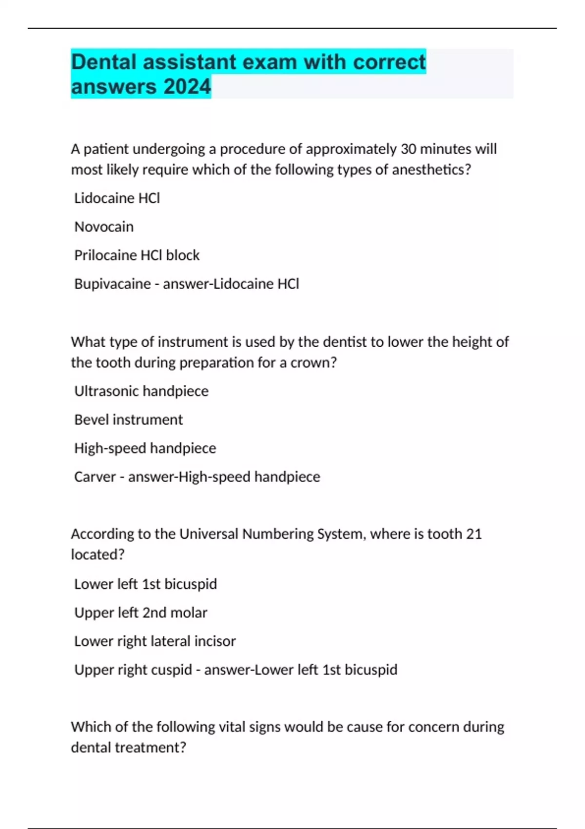 Dental assistant exam with correct answers 2024.