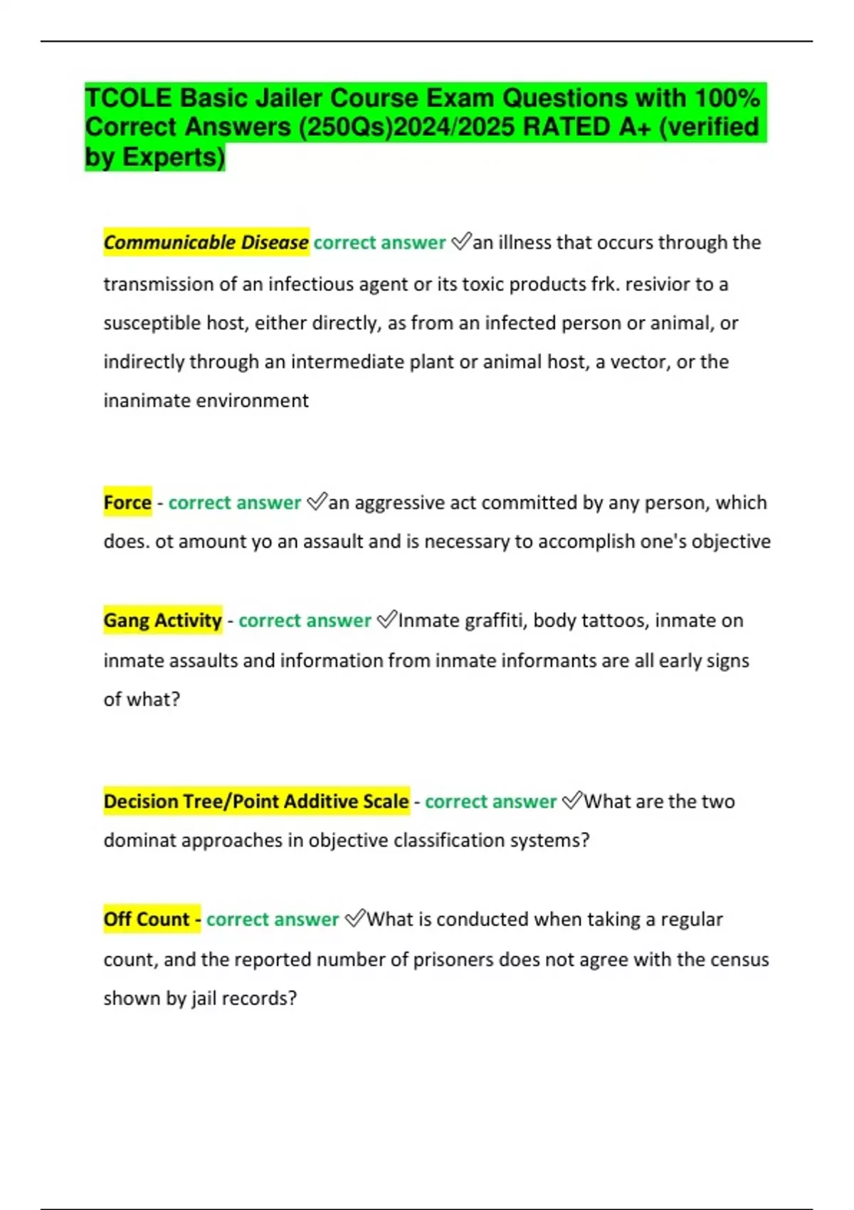 TCOLE Basic Jailer Course Exam Questions with 100% Correct Answers (250Qs)2024/2025 RATED A+ (verified by Experts)