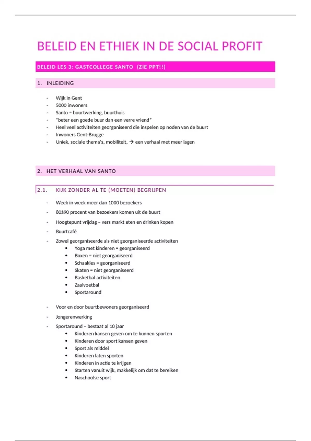 Samenvatting BELEID LES 3: GASTCOLLEGE SANTO