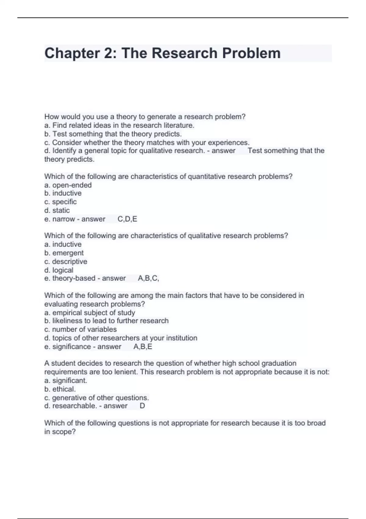 Chapter 2. The Research Problem Questions and Answers Latest Updated