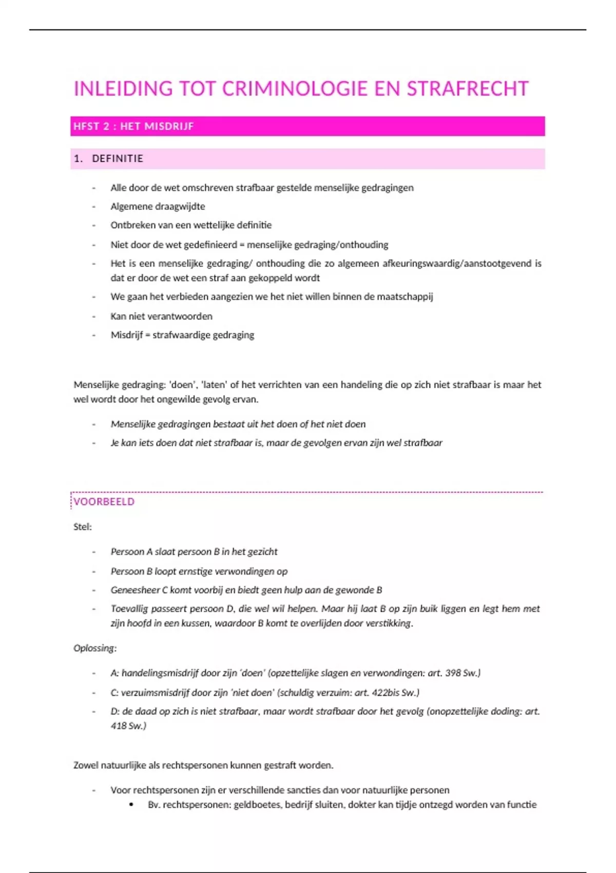 Samenvatting STRAFRECHT --> HFST 2 : HET MISDRIJF