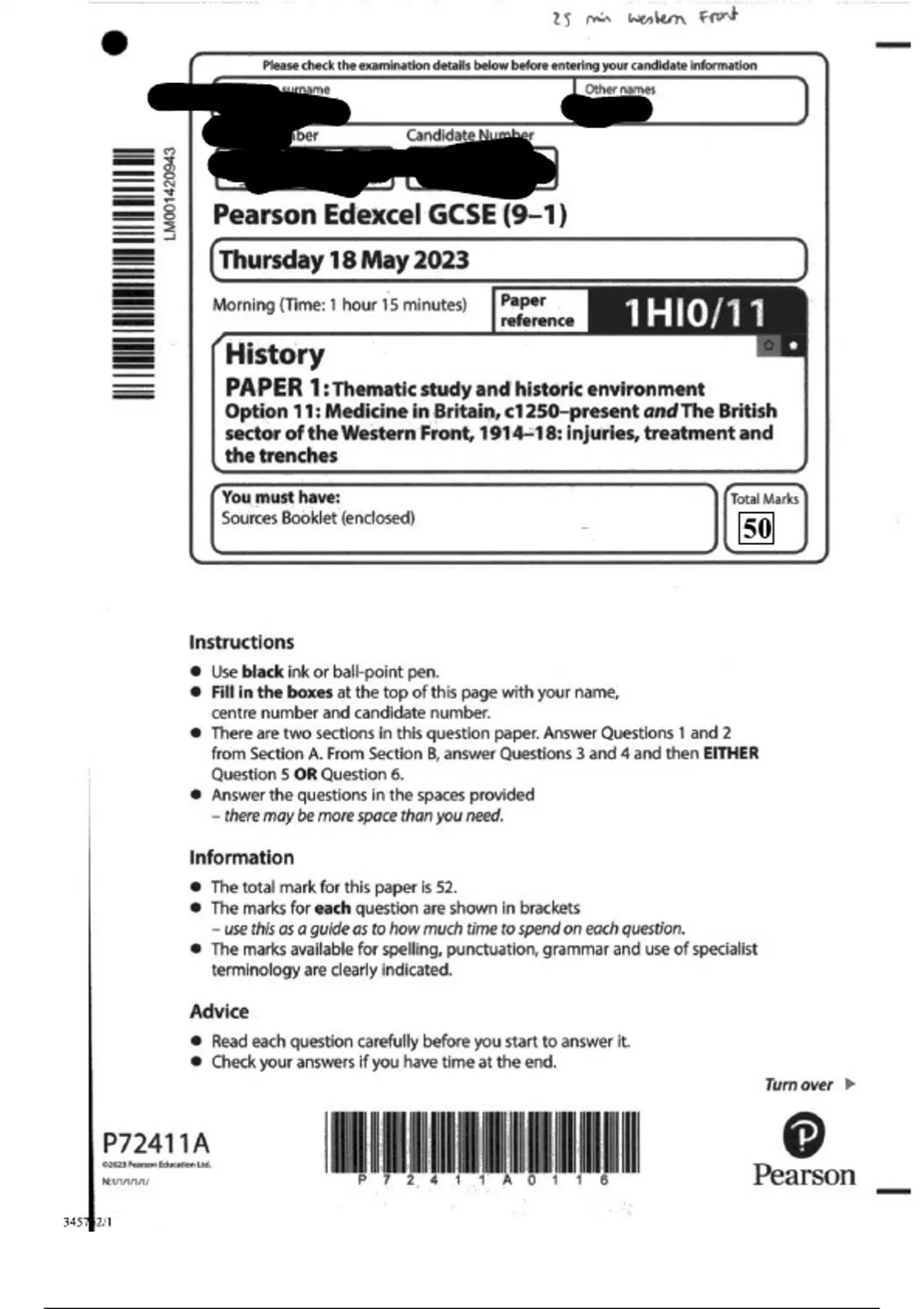 This is my GCSE History 2023 Paper 1 (Medicine in Britain and Western Front) that scored 50/52. I have also uploaded on Stuvia my History Paper 2 and 3 which both scored full marks.